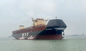 泰州海事消息,近日,江苏新时代造船为全球知名航运企业地中海航运(MSC)量身定制的11400箱LNG双燃料集装箱船——“新时代自强5”轮出江...
