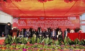 11月2日上午,新时代造船举行隆重仪式,为6#、7#、8#58500吨散货船命名。