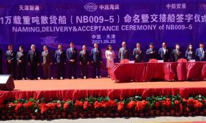 5月28日,新港船舶重工为中远海运散货运输有限公司建造的21万载重吨散货船首制船“惠锦海”顺利交付船东。 中远海运重工有限公司纪委书记王妍敏...