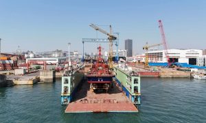 3月19日,山东陆海装备集团日照港达船舶重工有限公司承建青岛港4400马力对外消防拖轮2#船顺利完成下水。 该船成功下水标志着主体建造工作顺...