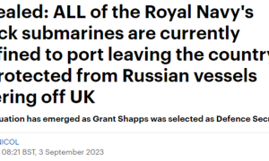 英国《星期日邮报》9月3日报道称,英国海军引以为豪的6艘攻击核潜艇全部停靠在港口,没有一艘出海巡逻,“大多数都停靠在码头等待维修”。其中包括...