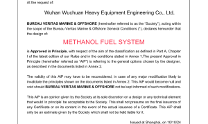 近日,法国船级社向中国船舶集团武昌造船重装公司颁发了船用甲醇燃料系统原则性认可AIP证书,标志着重装公司自主设计的船用甲醇燃料系统在可行性、...