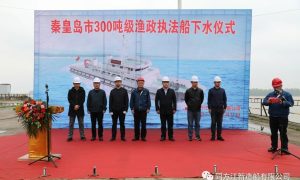4月8日,“秦皇岛市300吨级渔政执法船下水仪式”在同方江新造船公司江边码头举行。 该型船总长52.9米,型宽7.8米,型深4.2米;双机、...