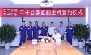 9月16日,中国船舶集团所属中国船柴与江门市南洋船舶工程有限公司举行了40000DWT/40500DWT两型系列散货船合计20台套船舶主机签...