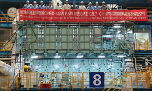 近日,全球首台8S50ME-C9.7-GI-HPSCR双燃料发动机在中船动力下属沪东重机有限公司镇江厂区成功交付。该发动机将搭载于福建省马尾...