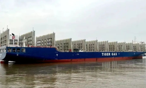 12月15日,由新扬子造船有限公司建造,搭载中船动力集团下属沪东重机7X52DF主机+船用FGSS系统的690FEU船(Tiger Long...