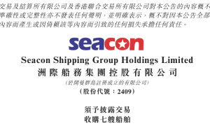 2月7日晚间,洲际船务集团控股有限公司(以下简称“洲际船务”)发布《(1) 主要交易出售一艘船舶及(2) 须予披露交易行使选择权购买一艘船舶...
