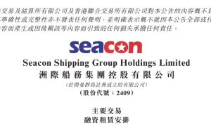 1月4日,洲际船务集团控股有限公司发布《主要交易融资租赁安排》的公告。 公告披露,1月4日,租船人及Seacon Shipping (均为洲...