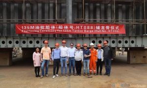 3月29日,由江苏海通海洋工程装备有限公司建造的一艘135M油轮(HT088)及两艘85M油轮(HT089/92)同日顺利举行铺龙骨仪式,这...