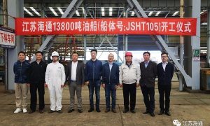 4月23日上午,江苏海通海洋工程装备有限公司建造的一艘13800吨成品油船开工签字仪式顺利举行。 据悉,该船总长139.75m,型宽20.8...