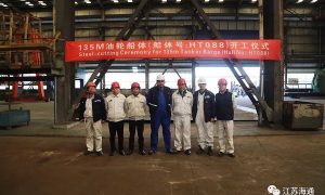 1月10日上午,由江苏海通海洋工程装备有限公司建造的一艘135M油轮开工签字仪式顺利举行。 据悉,该船总长135.00m,型宽15.00m,...