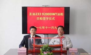 11月09日,江苏海通海洋工程装备有限公司隆重举行为海昌华海运建造的一艘9200吨成品油船——“圣油233”交船签字仪式。海昌华海运领导及其...