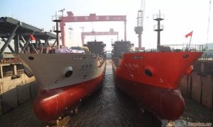 10月2日,江苏海通海洋工程装备有限公司建造的一艘13800吨油船(华顺298)及一艘9200吨油船(圣油236)同时下水,这两艘船均入CC...