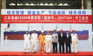 10月20日上午, 由海通海洋建造的一艘63500吨散货船(船体号:JSHT359)顺利开工。 据悉,该船总长199.9m,型宽32.26m...