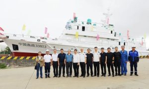 4月20日,由江新造船为浙江舟山市普陀区海洋经济发展局建造的300吨级新型渔政船“中国渔政33135”下水仪式,在该公司江边码头举行。 该船...