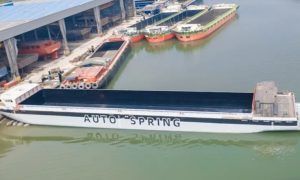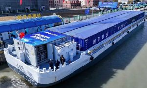 11月28日,湖州港口船业有限公司承建的河南港航集团有限公司4艘54TEU纯电集散两用货船举行开工仪式。 该型船总长59.65米,船宽10....