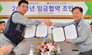 现代尾浦造船19日宣布,该公司在蔚山总部举行了《2023年集体谈判协议签约仪式》。 据了解,在9月11日举行的第21轮谈判中,劳资双方达成了...