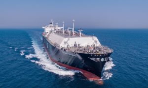 4月28日,现代重工向Knutsen LNG France交付了一艘17.4万立方米液化天然气(LNG)运输船“Grazyna Gesick...