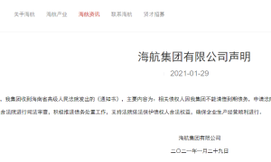今天(29日),海航集团发布声明,集团收到海南省高级人民法院发出的《通知书》,相关债权人因海航集团不能清偿到期债务,申请法院对海航集团破产重...