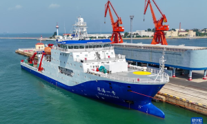 新华社消息,8月11日,青岛大港口岸1号码头,在办完出入境船舶监管手续后,“深海一号”远洋科考船解缆离境,搭载“蛟龙号”载人潜水器正式开始为...