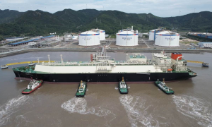 全球首艘第五代大型LNG运输船“绿能瀛”号顺利抵达宁波“绿能港”