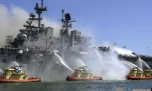 海外网12月1日消息,美国海军当地时间11月30宣布,今年7月燃烧了近5天的准航母“好人理查德”号两栖攻击舰因损毁严重无法修复,将进行报废处...