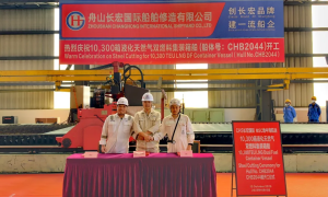 9月30日,长宏国际为MSC建造的首制两艘10300箱LNG双燃料集装箱船(CHB2037/CHB2038)在1号船坞顺利完成铺龙骨仪式。标...