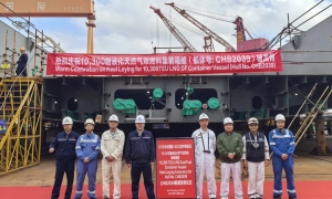 10月24日,舟山长宏国际为MSC建造的第3艘10300箱LNG双燃料集装箱船(CHB2039)在1号船台完成铺龙骨仪式,标志着该系列船舶的...