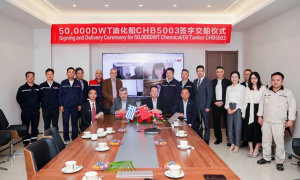 10月27日,舟山长宏国际为希腊Lavinia公司建造的首艘5万吨油化船CHB5003命名交付,Lavinia公司总经理Ioannis La...