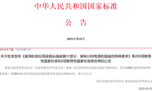 近日,国家市场监督管理总局(国家标准化管理委员会)批准《家用和类似用途插头插座 第31部分:装有USB电源的插座的特殊要求》等295项推荐性...