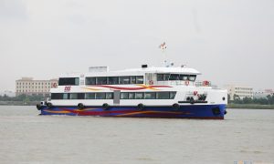 近日,舟山市40米级/288客位双体高速客船——“普陀祥云”号顺利开抵朱家尖西岙码头。 该船由江龙船艇自主研发设计,也是舟山范围内首艘钢铝复...
