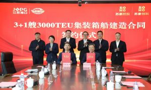 5月28日,江苏省港口集团江苏远洋与苏豪创科、中船黄埔文冲分别签订集装箱船建造合同。 苏豪创科3+1艘3000TEU集装箱船 5月28日,江...