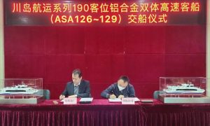12月28日,英辉南方为广东省港航集团有限公司下属广东蓝海豚旅运股份有限公司旗下台山市川航船务有限公司设计建造的4艘190客位铝合金双体高速...