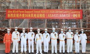 1月6日,英辉南方为丹麦MHO海上 风电运维公司建造的两艘混合动力高端风电运维船(ASA137/138)铺龙骨。 该项目船总长35.8米,型...