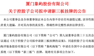 8月26日,厦门象屿股份有限公司(以下简称“厦门象屿”)发布《关于控股子公司拟申请新三板挂牌的公告》。 公告披露,厦门象屿子公司南通象屿海洋...