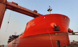 近日,由宜昌鑫汇船舶修造有限公司建造的4500DWT外贸化学品船“KSU-02”在枝江顺利吉水。 该船为钢质、双壳、双底、双桨、双舵、尾机型...