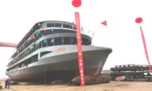 6月30日,搭载赛思亿动力系统的“长江三峡1”号游轮在湖北宜昌鑫汇船厂船台完成船体建造。 “长江三峡1”号游轮由长江...