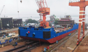 10月21日,江苏省镇江船厂(集团)有限公司为中远海运散货运输有限公司“一带一路”项目——几内亚铝土矿项目配套建造的第五批次驳运设备2646...
