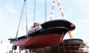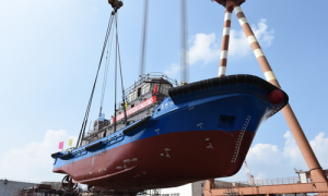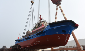 9月28日,江苏省镇江船厂(集团)有限公司为太仓港长海船务有限公司设计建造的2×2427kW全回转拖轮——“太港拖18”顺利吊装下水。