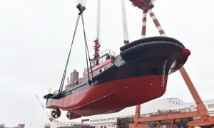 2月29日,镇江船厂为舟山市鑫亚船舶修造有限公司设计建造的2646kW全回转拖船顺利吊装下水。