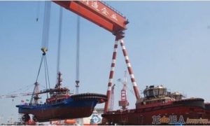 5月16日上午,由江苏省镇江船厂(集团)有限公司自主设计建造的又一艘5000hp全回转工作船顺利吊装下水。