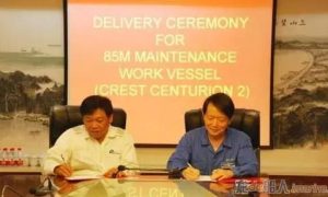 2016年6月15日上午,江苏省镇江船厂(集团)有限公司为国外船东建造的又一艘具有国际先进水平的85米维护工作船——“CREST CENTU...