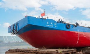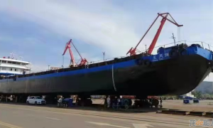 10月18日上午,青山船厂为荆州市长风运输公司改造的“长风968”号植物油运输船完成相关改造工程,移台下水。