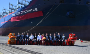 1月10日,青船公司为比利时CMB公司建造的第3艘6000TEU集装箱船举行盛大命名仪式,教母Nadine Saverys女士将新船命名为“...