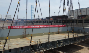 5月10日,青船公司5900TEU项目4号船完成搭载节点。 5900TEU系列集装箱船型长240m,型宽42.8m,最大装箱数6014箱,冷...