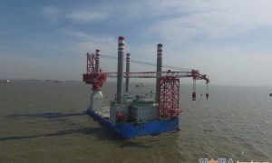 2018年5月5日,江苏韩通船舶重工为南通海洋水建有限公司建造的自升式 风电安装平台顺利交付。该船用于水深40M,深海区域风电安装,入级中国...