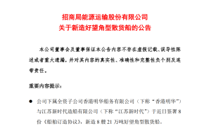 6月13日,招商局能源运输股份有限公司(“招商轮船”或“公司”)发布《关于新造好望角型散货船的公告》。 公告披露,近日,招商轮船下属全资子公...