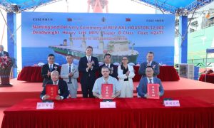 9月12日,中国船舶旗下中船黄埔文冲船舶有限公司为Schoeller Holdings集团批量建造的32000DWT重吊船3#船“AAL H...