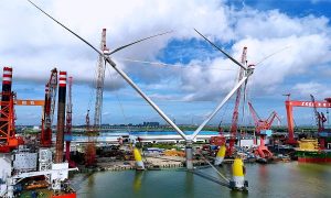 7月3日,随着风力发电机的风叶与轮毂精准对接,全球单体容量最大的漂浮式风电平台“明阳天成号”(OceanX)在中国船舶黄埔文冲正式完成安装。...