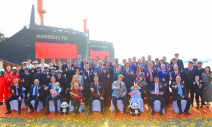 1月8日,中国船舶黄埔文冲为德国NORD集团公司建造的1900TEU系列船1#船H2500、2#船H2501举行命名仪式,H2500船被命名...
